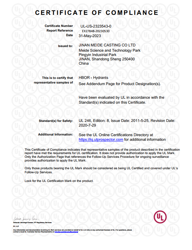 MEIDE WET BARREL HYDRANT GET UL CERTIFICATE