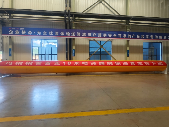此次下线的超大超长喷涂缠绕保温管,基管采用国内最先进的智能化生产线,配备铣边、成型、内外焊远程控制、采用最新一代的美国林肯焊机、焊缝自动跟踪系统、配备成焊智控、检测智控和数据中心,实现MES系统智能智造。