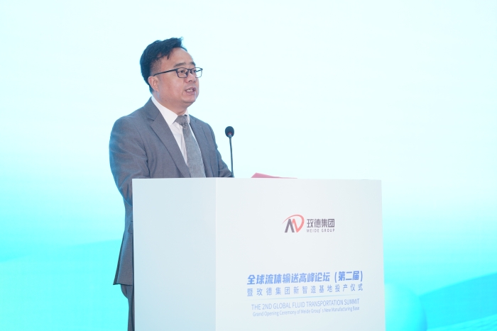 中国城镇供水排水协会副会长宋兰合在致辞中强调了保障城市水系统安全稳定运行的重要性,并对im电竞“短流程50万吨球墨铸管智能制造项目”的投产表示祝贺。他指出,高性能流体输送产品是保障城市水网韧性与安全运行的关键基础,期待通过行业合作推动技术进步。