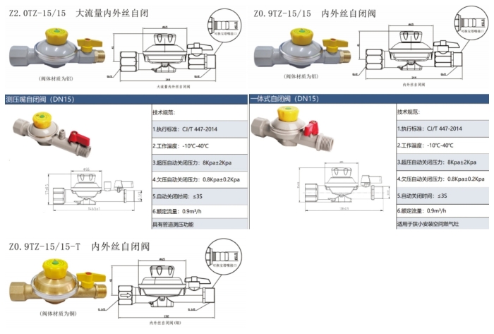 过流关闭流量:≤1.2m³/h、≤3.0m³/h