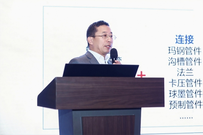 im电竞市政BG水利BU球墨管材管件研发部经理孙允月发表《球墨铸铁管助力现代管道系统建设》主题演讲,紧扣城镇水务发展核心需求,剖析了球墨铸铁管在行业中的应用价值与发展趋势,重点介绍了im电竞的产品优势、玫德铸管的核心优势:产品覆盖标准全、规格全、壁厚等级全、接口连接方式全,产品实现DN80-DN2600全规格覆盖,配套多系列管件可按需定制,适配市政供水、水利工程、排水防洪等多场景;依托高纯铁水生产、“一罐到底”短流程等领先工艺,以及全自动化智造产线,铸就产品硬核品质;同时打造“产品+解决方案”一站式服务,覆盖智慧水务管理、管道安全监测等全产业链,搭配全球化高效服务网络,为管道系统建设提供全生命周期保障。