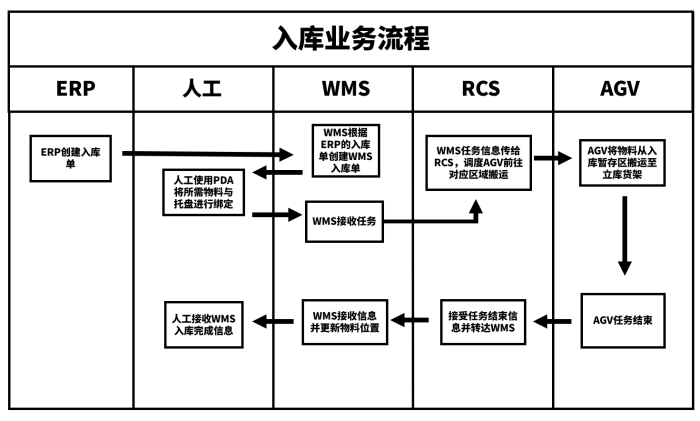 1.货物到货后,人工对货物进行检验,检验合格后人工下发物资入库任务。