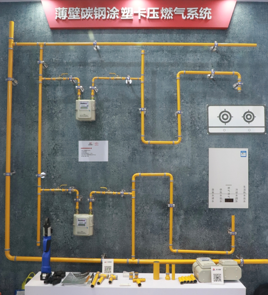 薄壁碳钢涂塑卡压燃气管道系统具备两项国际认证与四项专利技术,喷涂抗紫外线的聚酯树脂,耐老化,标配的防漏卡有效防止漏卡压,同时对卡痕进行有效保护,防止雨水对管件表面的侵蚀,安全可靠、安装快捷、经济环保、外观漂亮,优势突出。相比传统焊接、螺纹连接安装效率提升3倍以上,安装后免维护,综合成本降低20-25%,经久耐用,使用寿命延长50%以上,具有节能、低碳、环保的特点。