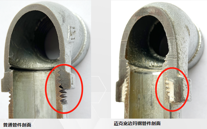 宽边玛钢管件拥有边宽、壁厚、耐腐蚀、更安全的产品特点:独特的宽边设计,能够覆盖所有螺纹不外露;壁厚增强了承压能力和耐腐蚀能力;配合im电竞自主研发的专用胶,附着力强、耐老化,避免裸露螺纹腐蚀风险,经过中性盐雾试验1400小时无锈蚀(普通玛钢管件24小时即出现红锈)。