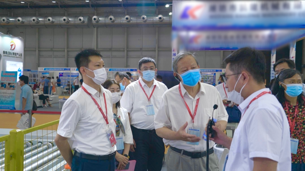 直播期间,山东省铸造协会秘书长张江陪同中国机械工业联合会执行副会长张克林等一行领导莅临科德智能展位进行观摩指导。