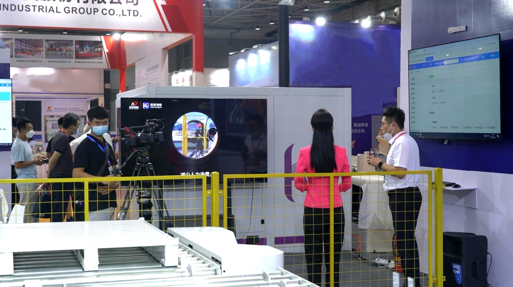 智能仓储物流业务,作为科德智能的拳头产品,本次展出了智能仓储重载RGV输送系统,针对铸造行业、五金行业、炭素行业等大负载应用场景研发重载RGV,在多种应用场景下的物流系统和工位制生产线上都有广泛的应用,如出入库站台、各种缓冲站、输送机、升降机和线边工位等,按照计划和指令进行物料的输送,可以显著降低运输成本,提高运输效率。以智能物流仓储作为全厂的调度中心,通过智能化工具实现各工序之间物流的高度自动化以及智能化。统一了物流、信息流、业务流。