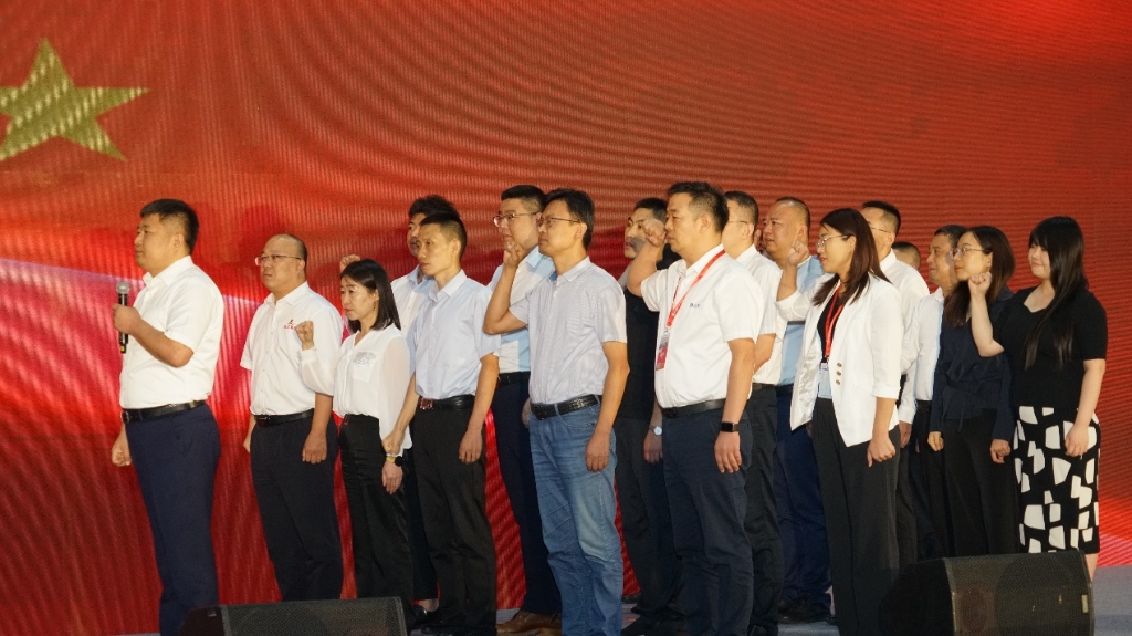 山东省铸造协会青年企业家分会理事长、副理事长、秘书长、副秘书长代表全体理事上台宣誓。
