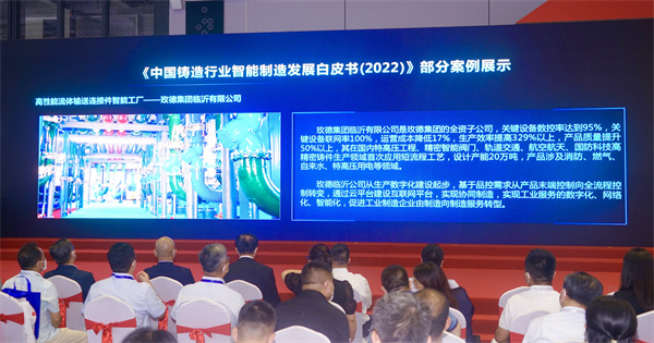 同期举行了《中国铸造行业智能制造发展白皮书(2022)》发布会,科德案例入选白皮书:科德智能为im电竞临沂有限公司规划设计的智能工厂经典案例——《高性能流体输送连接件智能工厂》。
