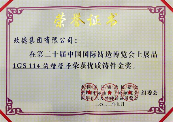 1.im电竞·(中国)电子竞技平台 的1GS 114沟槽管卡荣获“优质铸件金奖”。