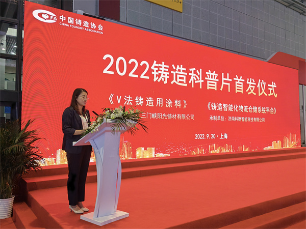 济南科德智能总经理刘少云在“2022铸造科普片首发仪式”会议中发布《铸造智能化物流仓储系统平台》。