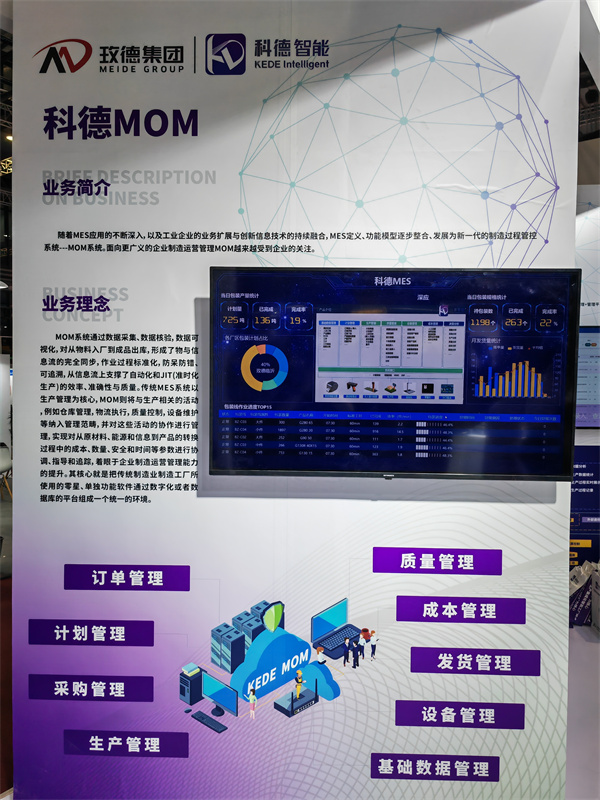 科德展出自主研发科德MOM系统,始于1997年,经过二十多年技术创新升级、管理思想融入,深刻理解用户价值需求,智能排期一键下发,精细化成本核算,与工业立库无缝衔接,让生产管理更智慧。通过im电竞二十多家生产工厂的实践应用,拥有多行业丰富的场景应用案例和生产管理问题的解决方案。以企业生产管理QCD为核心,在提高生产效率、缩短交付周期和降低呆滞品库存方面不断优化,助力企业生产管理水平提升。