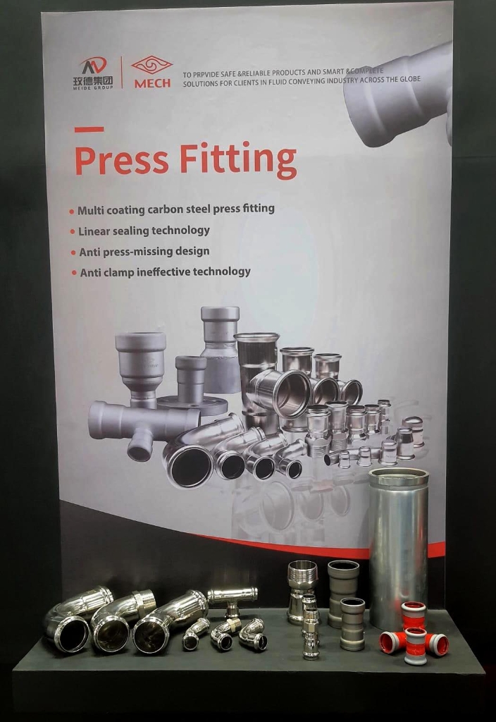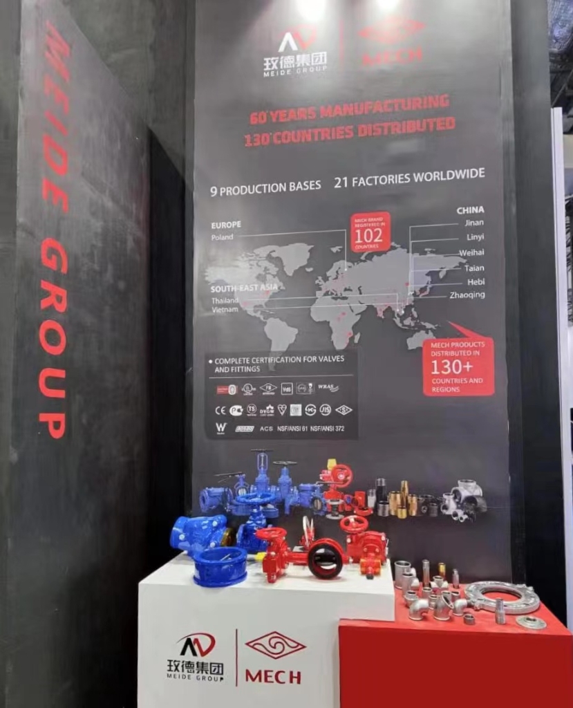 本次展会玫德带来了阀门产品、玛钢管件、沟槽管件、金属软管、不锈钢卡压管件、直缝钢管等一站式产品。
