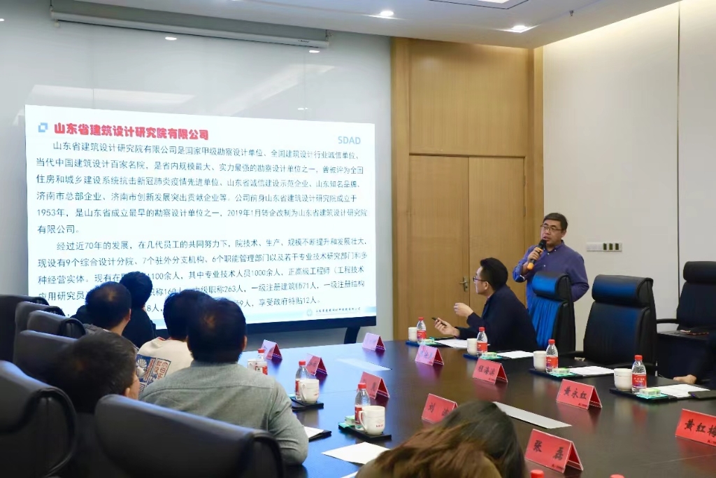 山建六院团队首先参观了集团展厅及各生产厂区,之后双方领导进行了交流洽谈,迈克阀门、济南雅昌等成员企业先后介绍了各自的特色产品及技术优势,山建六院周建昌总工讲解设计院技术方案以及与im电竞的合作愿景。