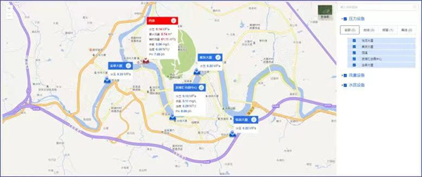实现水司辖区内水源地、水厂、管网、泵站等设施资产全方位可视化管理。