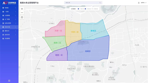 城市管网分区管理,实时监测各分区数据,重点管控高漏损区,降低供水损失。