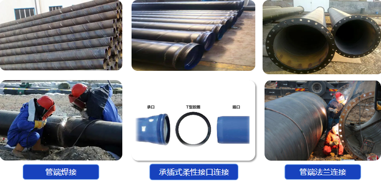 管端焊接、承插式柔性接口连接、管端法兰连接,传统的连接方式可解决管端接口不严密造成的渗漏问题。