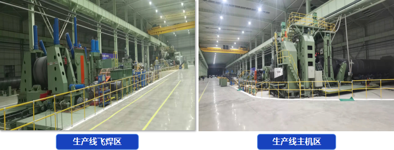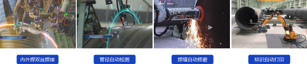 公司拥有5条螺旋管生产线,具备国内最先进的智能化生产线,配备铣边、成型、内外焊远程控制;采用最新一代的美国林肯焊机;焊缝自动跟踪系统;配备成焊智控、检测智控和数据中心,实现MES系统智能智造。