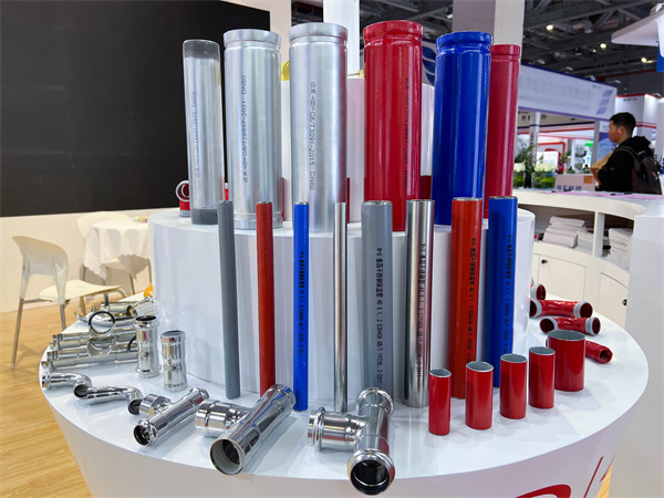 主要应用到燃气和消防领域,管件采用双防腐技术,国内首家获得UL/FM认证,目前也是国内唯一一家通过认证的企业。每百吨管材减少碳排量210吨,作为快装管道系统的拳头产品,主要有以下优势: