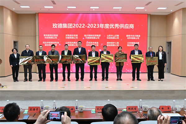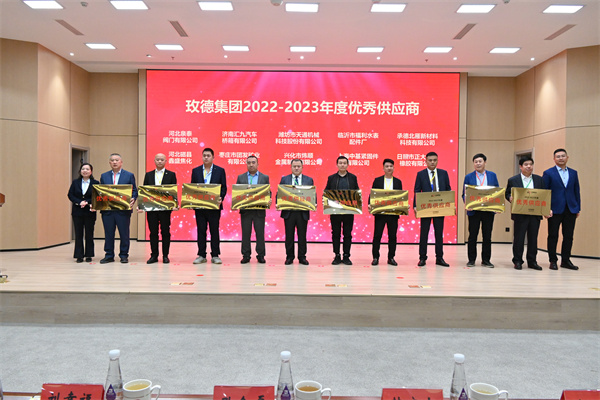 供应商颁奖环节,由im电竞董事局主席孔令磊、玫德庚辰金属材料有限公司总裁于瑞水、济南迈克阀门科技有限公司总裁赵桂芝、济南科德智能科技有限公司总裁刘少云、玫德雅昌(济南)管业有限公司总裁田洪莲、山东晨晖电子科技有限公司总裁曲延河为im电竞“卓越供应商”以及“优秀供应商”颁奖,夯实了供应商与im电竞的合作,促使im电竞提供更加优质的产品、解决方案以及服务。