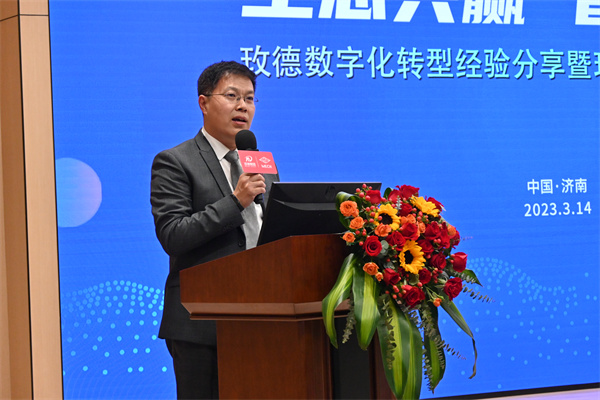 济南市平阴县玛钢厂信息化总监宫敬国、山东神力索具有限公司信息化总监孟海亮、济南澳海炭素有限公司副总经理李源分别对科德智能提供的软硬件实施案例进行了分享,介绍了由数字化所带来的企业生产、管理、销售等方面的升级,阐述了数字化转型的意义与价值。