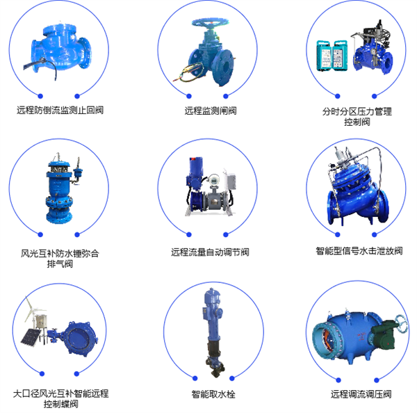 智能阀门产品依托于智慧水务建设,并服务于智慧水务深化应用。智能阀门拥有多种数据传输方式、自动远程控制、多种监测功能、故障警告、能源模块、GIS精确定位等功能。