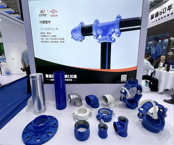玫德自产的TPEP防腐管+玫德自主研发的大口径沟槽连接实现了钢管的柔性连接,替代伸缩节连接阀门,填补了国内空白,引领水利行业连接新趋势。