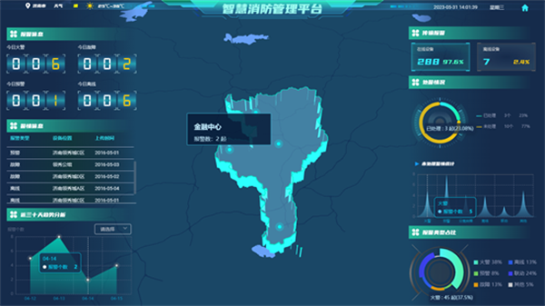 智慧消防管理平台“一张图”展示了企业整体的消防安全运行情况,通过远程监控、物联网监测、电气监控等信息化技术的应用,实现监控、管理一体化,提高了火灾防控效能。