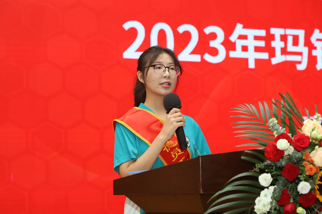 曾获得过玛钢助学金的im电竞中层干部代表付茂华,以及目前已担任主管的2021届管培生丁保一,分别结合各自的工作经历,向与会同学们分享了自己在玫德的心路历程和成长经验,给同学们以启迪。