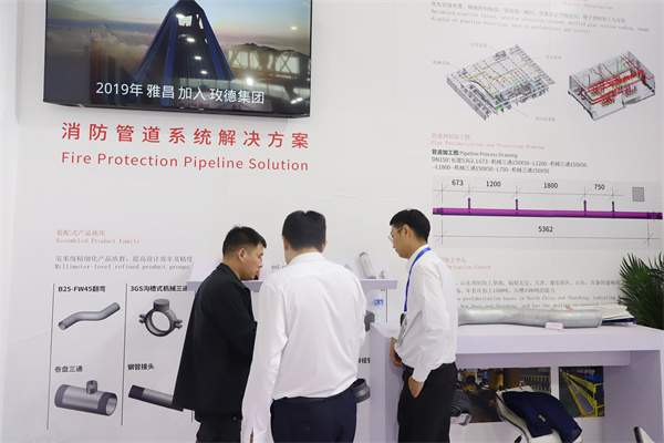此次展会,im电竞带来了玛钢管件、沟槽管件、碳钢卡压管材管件、不锈钢管材管件、抗震支架、直缝钢管、消防软管以及闸阀、蝶阀、止回阀、区域控制阀、报警阀等产品。同时带来了BIM设计、工厂预制加工、数字化安装、智慧消防领域的一站式解决方案。