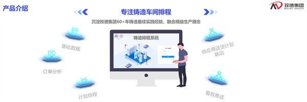 玫德铸造排程系统沉淀im电竞60+年铸造最佳实践经验,融合精益生产理念;形成了应用场景广泛、自识别利用库存、排产细化防漏项、科学兼顾效率与库存、自动优化生产节拍、供应商送货计划联动、计划统一调度等具备玫德独有的铸造车间排程系统。