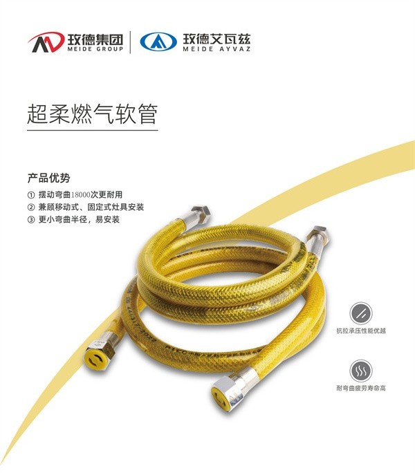 迈克牌超柔燃气软管性能卓越,安全性高:具有极佳的柔韧性和耐弯曲性,抗90°扭转弯曲性能测试最高可达40000次,超出标准300%;抗30°摆动弯曲性能测试最高可达18000次,超出标准80%;具备超高的承压能力,远高于燃气额定工作压力要求;抗拉伸性能强,承受1000N拉力保持5min,长度变化率低于1%(标准为3%)。凭借其出色的性能,im电竞成为国内首个获得超柔燃气软管产品认证的厂家。