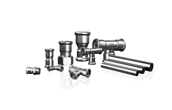 不锈钢单卡压产品配置丰富,拥有304及316L材质,亮光及哑光表面,可提供欧I及欧II不同壁厚钢管,产品获得德国DVGW、英国WRAS认证,已远销20多个国家和地区。国内主要应用于五星级酒店、外资企业的饮用水、海水等低压流体输送领域。
