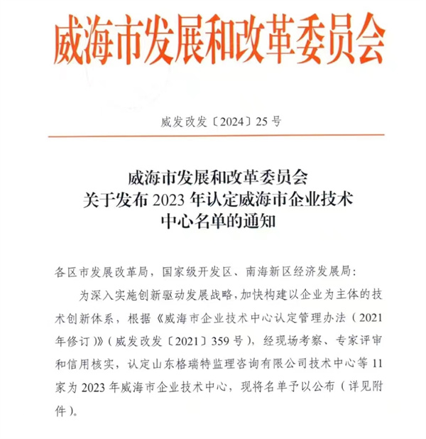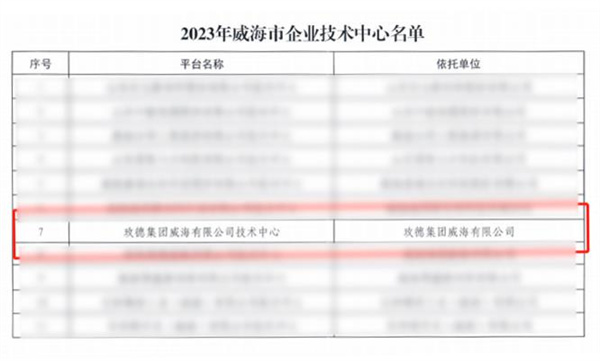 im电竞威海有限公司深入实施创新驱动发展战略,经现场考察、专家评审和信用核实,获得威海市企业技术中心认定。